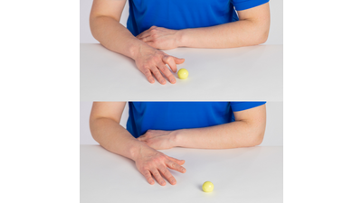 Sit at a table. Place a ball rolled from putty in front of your index finger.