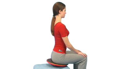 Place a wobble board on a firm surface (table or chair). Sit on the board, keeping an upright posture.