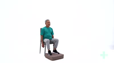 Sit on a chair with your feet flat on a foam balance pad that is placed in front of your chair.