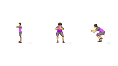 Bend your knees, keeping your weight in the middle of your feet until your thighs are parallel with the floor and your knees are over your feet in a squat position. Shift your weight to one foot.